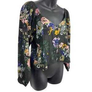 RVCA Black Women Top Blouse Small 8 Floral Sweetheart Cartia Long Sleeve New