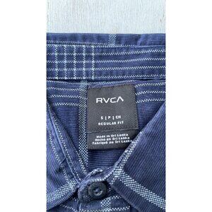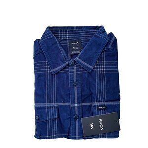 Introducing the RVCA Blues Walk Cord Long Sleeve Shirt with Button Front, perfect for any occasion. This shirt features a collared neckline, button closure, and corduroy fabric type. The plaid pattern and blue exterior color make it a great choice for the fall and spring seasons. With pockets and a breathable design, this shirt is both functional and stylish. The shirt is sized as a SMALL and has a regular fit. It's perfect for a casual day out or a party/cocktail event. The shirt is made of cotton and has a button-down collar style. The shirt is not handmade and has no vintage accents. The shirt is suitable for men and is part of the RVCA brand.