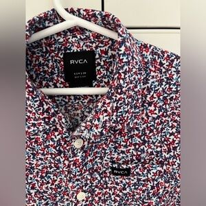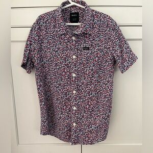 RVCA Button-Down Short-Sleeve Boys Shirt size S floral print blue red white