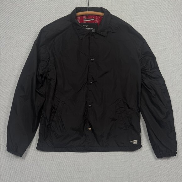 RVCA Coaches Jacket Red Bandana Lining Snap Button Front Black Nylon Size S