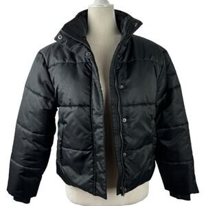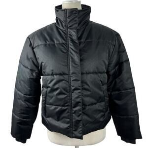 RVCA Eezeh Animal Print Black Puffer Jacket Full Zip Cropped Nylon Size XS