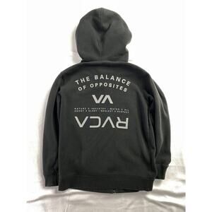 RVCA Full Zip Hoodie Youth Boys Sz Large Black Active Casual Sweatshirt Logo