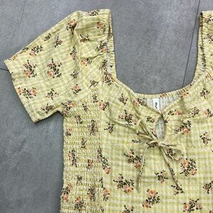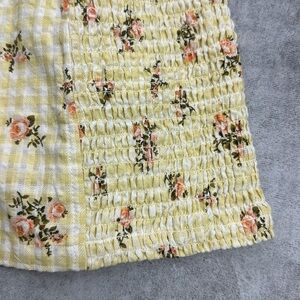 Made of linen-blend fabric, this floral mini dress has all the pretty details: puff sleeves, an empire bust with a keyhole and tie, and smocked side panels to hug your figure.