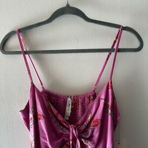 RVCA Hau Tree Pink Mini Dress Size L Surfer Summer Feminine Girly Coastal NWT