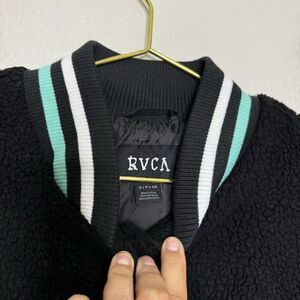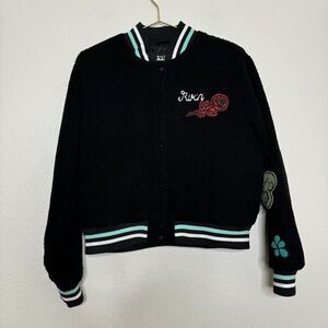 RVCA Women Size S/8 Black Faux Fur Dream Team Letterman Jacket