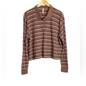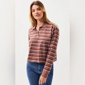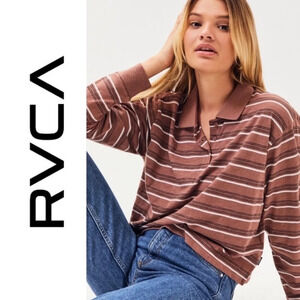 RVCA | Junction Striped Polo Long Sleeve Cropped Shirt Top EUC
