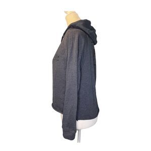 RVCA Hoodie Sweatshirt in Heather Blue with a Rolled Cropped Hem. It is Cropped has Long Sleeve, has a drop shoulder boxy fit and a draw string hood. It has a RVCA Logo in black on the front and back. Great for running, working out, yoga, the gym, running errand or just lounging around. It would make a great Christmas Hanukkah Valentine’s Day Birthday or any Holiday gift!