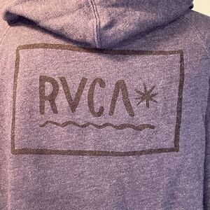 RVCA Logo Graphic Print Hoodie Sweatshirt Blue Fleece S