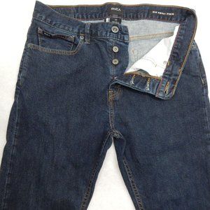 RVCA Men's Button Fly Straight Cut Dark Wash Jeans SIze 33/28