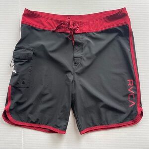 RVCA Men's Classic Length 20" Eastern Board Shorts Swim Trunks Black N Red SZ 38