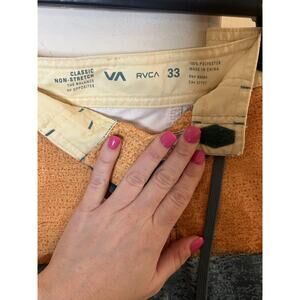 Elevate your summer wardrobe with these stylish RVCA Men's Color Block Swim Trunks in size 33. Perfect for a day at the beach or lounging by the pool, these trunks feature a colorful and eye-catching pattern that will make you stand out from the crowd. Crafted from high-quality materials, these trunks also boast convenient features like back pockets and side pockets for storing your essentials. Whether you're taking a dip in the water or just soaking up the sun, these swim trunks are sure to make a statement. Upgrade your swimwear collection today with these must-have RVCA trunks.
