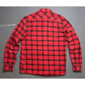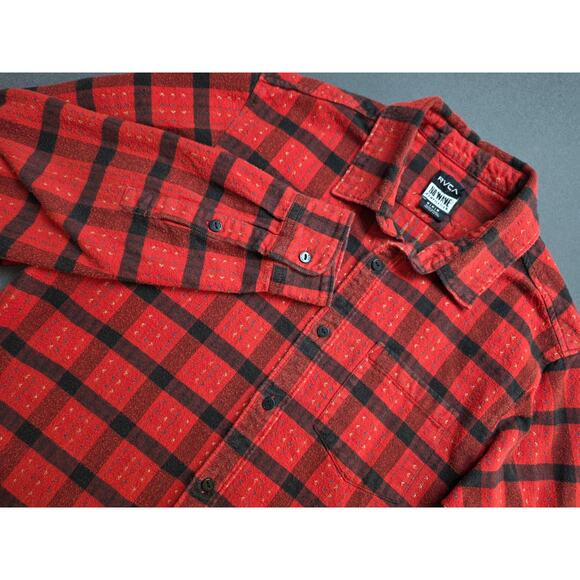 RVCA Mens Medium Flannel Shirt Red Black Plaid Button-up Heavyweight Cotton