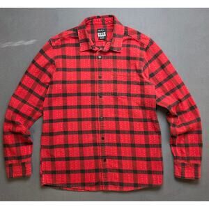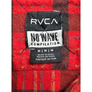 RVCA No Wave Compilation Mens Medium Flannel Shirt Red Black Plaid Button-up Heavyweight Cotton Skater