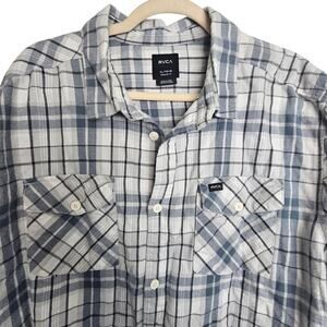 RVCA Mens Shirt Gray Plaid Long Sleeve Button Front Men XL Regular Fit Flannel Shirt