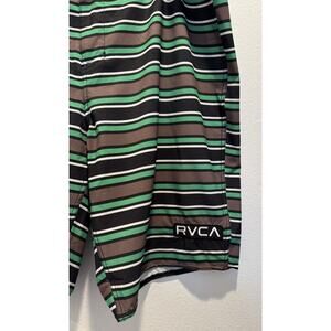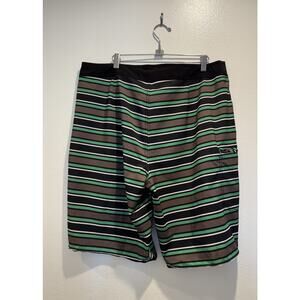 RVCA Men’s Size 36 Striped Board Shorts Swim Green Brown Black By PM Tenore