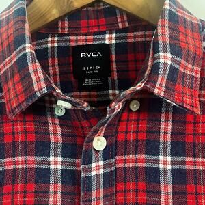 RVCA Mens Slim Fit Button Down Shirt - Red Blue Plaid, Size S