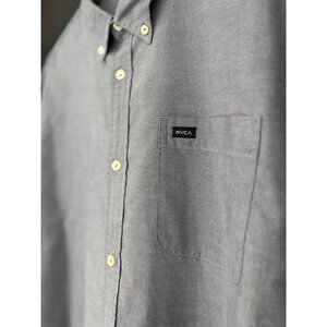 RVCA Men's Slim Fit Button-Up Shirt XXL Blue Long Sleeve Casual Classic Going Out
