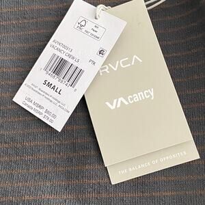 This listing is for a new with tags RVCA Men's Small VAcancy T-Shirt in Brown Stripe. Crew Neck, Long Sleeve, Horizontal Stripe, 100% Cotton, Machine Washable.