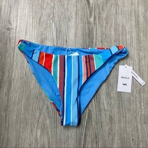 NWT RVCA NWT HORIZON REVERSIBLE STRIPE BIKINI MEDIUM BOTTOM. Size L