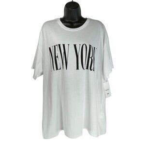 RVCA New York Los Angeles Graphic TShirt Sz S White Black Oversized Cotton Tee