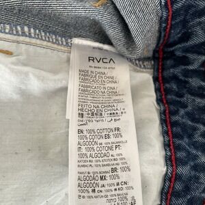 The RVCA Recession Denim Shorts are a stylish and eco-conscious addition to any wardrobe. Made from 100% cotton denim fabric, these shorts feature a regular fit with a fixed waist and a button closure. The cargo style, complete with a hammer loop, utility pocket, and zip fly, adds functionality to the classic blue color. With a size 29 waist and 5 pockets for convenience, these shorts are both fashionable and practical for everyday wear.