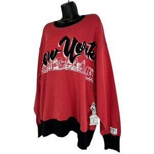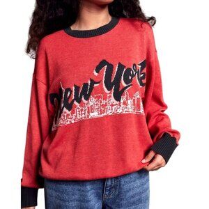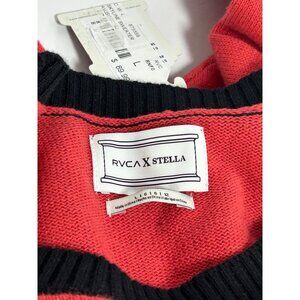 RVCA STELLA MAXWELL Skyline Sweater Sz L Red Black Colorblock New York Graphic