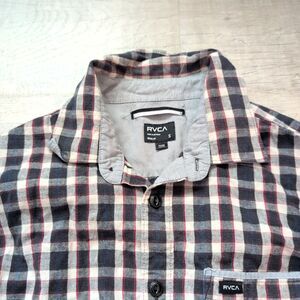 RVCA Shirt Adult S Black Beige Grey Plaid Button Up Long Sleeve Casual Mens