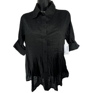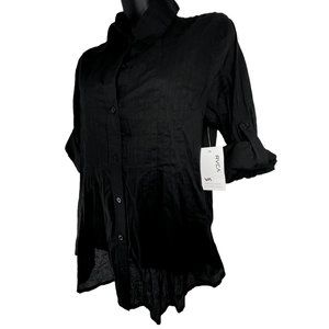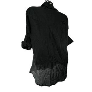 RVCA Shirt Button Down Black Sheer Light Pleated Long Sleeve Shirt Womens Small