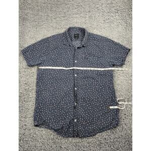RVCA Shirt Men Large Blue Button Up Short Sleeve Skater Geometric Print Hipster