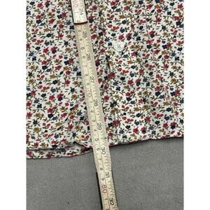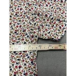 Color/Pattern: White base with multicolor ditsy floral print (red, blue, olive)