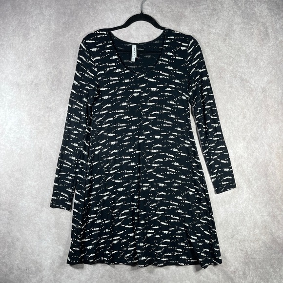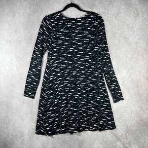 RVCA Skater Dress Womens Small Black White Tunic Mini Long Sleeve Scoop Neck