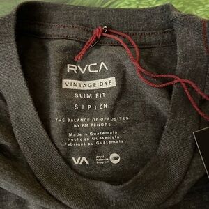 RVCA - The Trippy Snail and Mushroom Tee. Large graphic screened on front. Contrast stitching in a nice burgundy shade.Ribbed crew neckline. Short sleeves. 50% Cotton. 50% Polyester. Slim fit. Vintage dye. Super SOFT!! Machine wash. Imported.