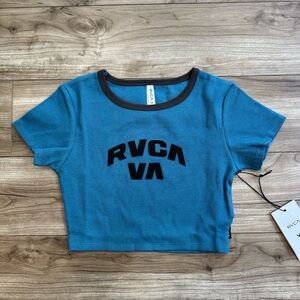 RVCA Strange Times Half Baby Tee Knit Crop Shirt Blue Sz XS Ribbed NWT