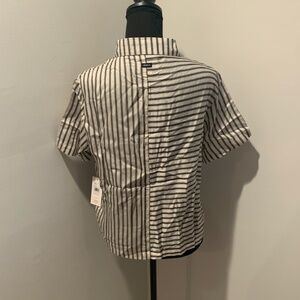 RVCA Sunday Collection Take it Easy Top in white and black stripes. Short sleeve, button front. Chest pocket. Women's size small. New with tags.