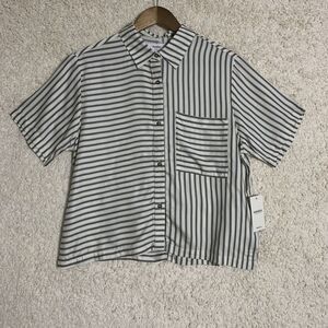 RVCA Sunday Collection Striped Button Up White Shirt Womens Size Medium NWT Top