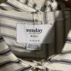 RVCA Sunday Collection Striped Button Up White Shirt Womens Size Medium NWT Top