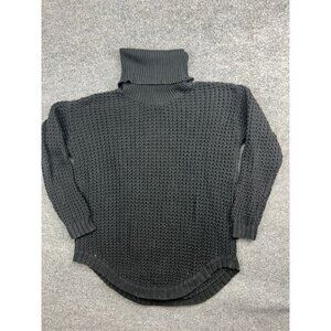 RVCA Sweater Women's Large Black Cable Knit Turtle Neck Pullover Logo