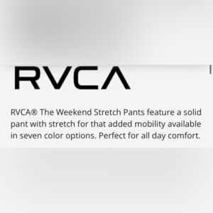 RVCA THE WEEKEND FIT STRETCH PANTS M3493RWS NEW WITH TAGS SUZE 34 TAN INSEAM 32