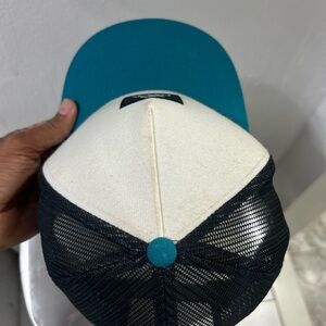 RVCA cap with teal brim and black mesh. Simple and modern design.