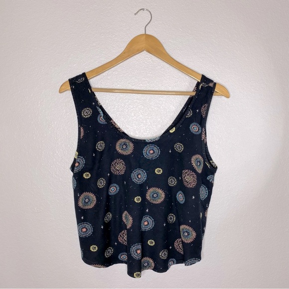 Pre owned in great condition RVCA Top Black Fireworks Print top, Size Medium Cross at back
