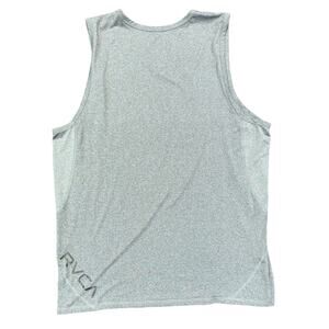 RVCA men’s sleeveless tank top in heather gray, size XXL. Lightweight performance-style fabric with a comfortable athletic fit. Features a subtle VA logo on the chest and RVCA logo at the lower back hem.
