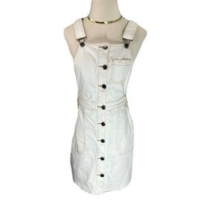 RVCA White Denim Overall Skirt Dresses Size XS Pockets Conquer