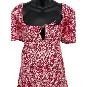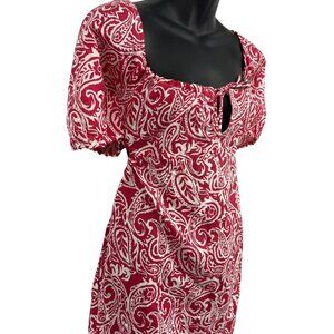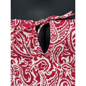 This stylish dress from RVCA features an elegant paisley pattern in red and white, offering a bohemian feel. The keyhole tie detail adds a modern twist, making it suitable for various settings. Its lightweight fabric ensures comfort and breathability, while the short sleeves provide a relaxed fit for warmer weather.
