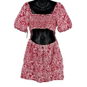 RVCA Women Dress Size Large 12 Here For It Mini Linen Short Sleeve Keyhole New