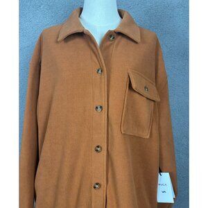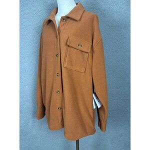 RVCA Women's Polar Birdie Shacket Mocha Bisque Overshirt Large Front Pocket NWTs