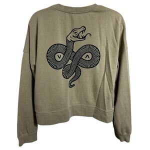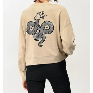 RVCA Women's Snake Crop Sweatshirt Sz M Tan Fleece Top Pullover Casual
