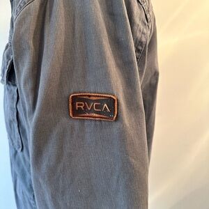 RVCA men’s jacket in gray with pockets and added pockets on chest.