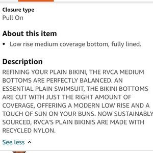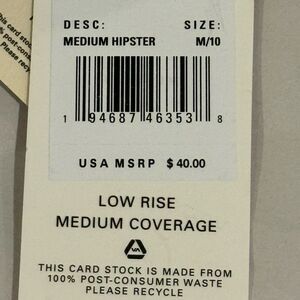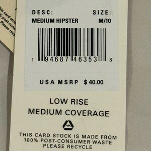 RVCA NWT LOW RISE WITH MEDIUM COVERAGE MSRP $ 40