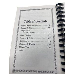 • Includes sections for appetizers, soups, vegetables, main dishes, breads, desserts, cookies, and more