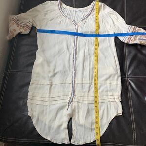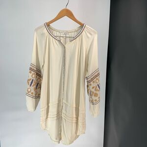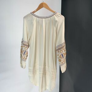 R VIVIMOS long tunic top blouse long sleeve embroidered boho beige white sz s